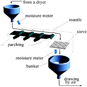 The MICRORADAR114 open l/4 resonator on-line moisture meter is designed for continuous moisture measuring  in powders and granules, and provides measurements that are insensitive to sample preparation, including variations in bulk density.  The devises sensor can be mounted in places of material free fall in pipes during flour transferring, above loading bunkers and other places. The complete set of delivery of the device includes the program of storage and displaying of moisture real-time, that allows to enter into the computer, to watch, to store and to print the information on moisture for any span.