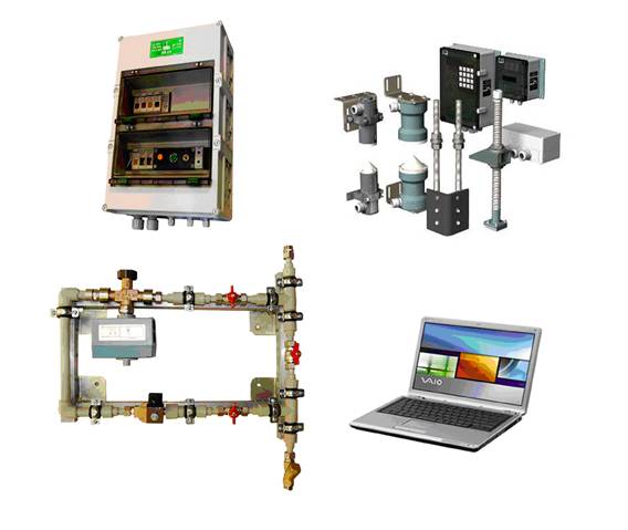 Bloki podstawowe systemu – Blok komutacji i sygnalizacji, miernik wilgotności MICRORADAR113.2Ê-2Ì, panel hydrauliczny, komputer. Praca systemu Zasada pracy systemu polega na stworzeniu sterującego oddziaływania na zawór regulacyjny w celu zwiększenia lub zmniejszenia ilości doprowadzanej wody, w zależności od zachodzącej różnicy pomiędzy bieżącą wartością wilgotności masy sylikatowej przy wyjściu z mechanizmu nawilżania a właściwą (ustawioną) wartością.